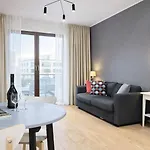 Nice Studio By The River Walonska 15 Spa - Gym - Sauna - Jacuzzi comprises an adjoining terrace and a sitting area and features views of the river. Enhancing your comfort, a shower can be found at the apartment. Moreover, there are a hairdryer and bath sheets as well.